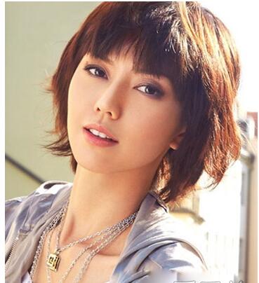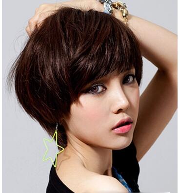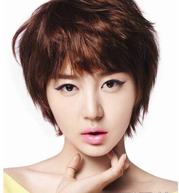 时尚的韩国女生发型,优雅的短发发型,时尚的碎发设计显露出别致的清爽与气质感, 加上深色的巧克力染发颜色清新灵动。