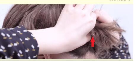 好了之后,将这两撮马尾贴着后脑杓,「向上」用小黑夹固定~这么一来不仅落发减少,还能打造出圆润好看的后脑勺喔!