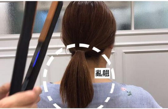其实只要将马尾绑好,并使用平板夹抓取适量的发丝,从打结处夹到发尾时向内夹,就可以制造完美的弧度啰~多抓取几搓来夹效果更好!