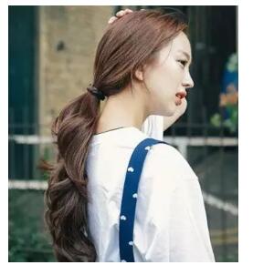 最随意的低马尾,自己在发尾做一些卷卷的设计,可以用棒弄卷发尾,然后这样随意的扎着低马尾。很优雅~