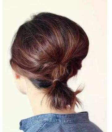 双层低马尾内扣, 将头发的上部分的扎成马尾后固定,后面把下面部分的头发也扎成马尾,固定在一起后,最后的发束进行内扣,不要扯出来,这款发型适合的姑娘哦~