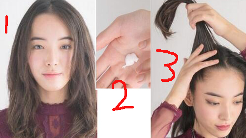 步骤三、用手取左侧前额的一束头发,接着把发蜡均匀涂到头发上。