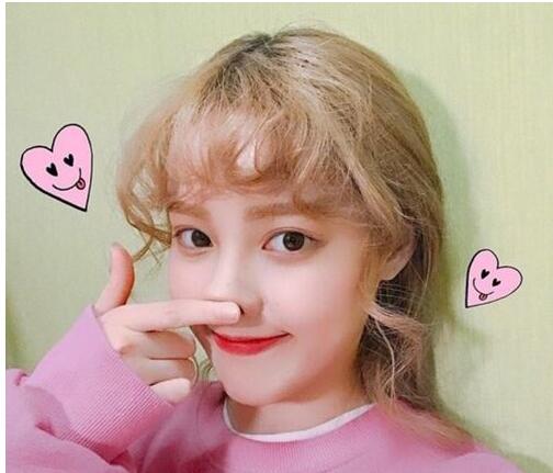 2017年超流行的卷刘海,蓬松小卷毛加上金色系的发色秒变可爱芭比,萝莉感十足,适合皮肤白的妹子。