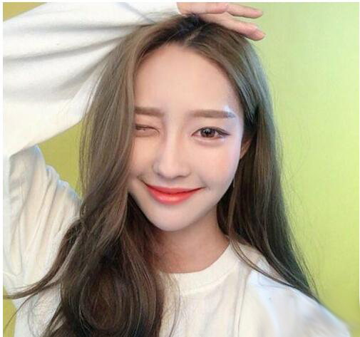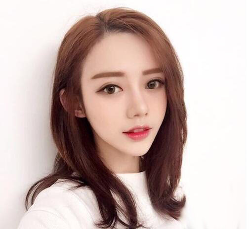 2017年齐肩中发发型人气也是不低,发尾刚刚超过锁骨,搭深栗色发色韩范十足,很显白的一款发型。
