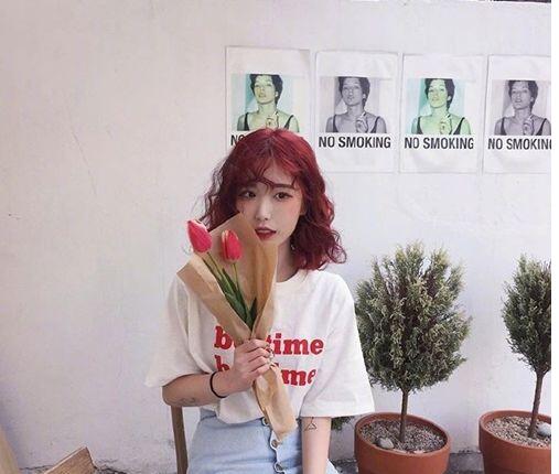 同款一款小卷发,想要张扬一点?就来试试个性的红发吧!染成这种偏酒红的发色显白又显气质。