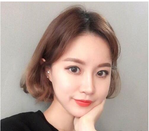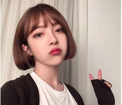 韩式清新波波头,空气刘海加奶茶棕色发色甜美清新,和夏天的浅色系配在一起,显白到不行!