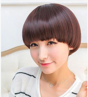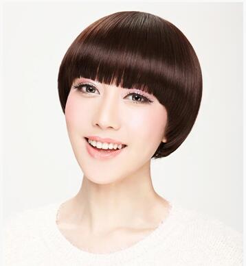 清新低调的深棕色染发再配合这种简单的女生假发短发蘑菇头造型更添女生十足的可爱甜美风,当然清爽感也是十足的。