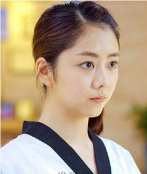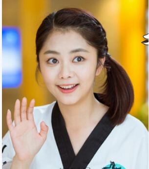 身穿一身跆拳道服的谭松韵,搭配上一款无刘海的侧扎马尾辫发型,是不是很显精神活力啊,白皙的脸蛋更可人。