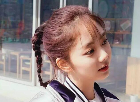 当然谭松韵也梳过马尾麻花辫,搭配额头前的空气刘海,超级减龄哦。