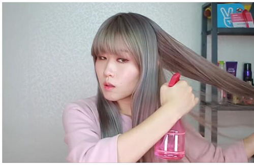首先在发上喷上造型喷雾( 一定要喷喔! 不然你卷半天都在做白工 )
