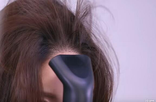 中分浏海要好看,「美人尖」的位置绝对是关键,这时候利用吹风机专注地往美人尖的位置吹。