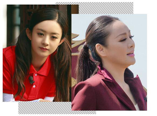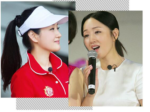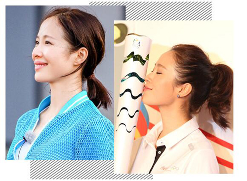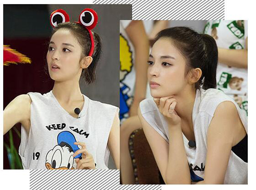 因为节目中不仅要美美的亮相,还要参与有游戏环节,马尾辫是女神必备造型。将全部头发都集中到后面扎成高马尾,不仅清爽还可以露出完美的容颜。