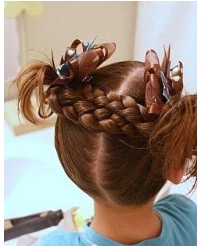 舞蹈时候所打理的发型,对舞蹈本身的魅力也会有些不一样,儿童舞蹈发型扎发,这款是中长发向后梳的款式,上层头发编成向后梳的小辫子,分别扎起来,细一点的辫子很有魅力。