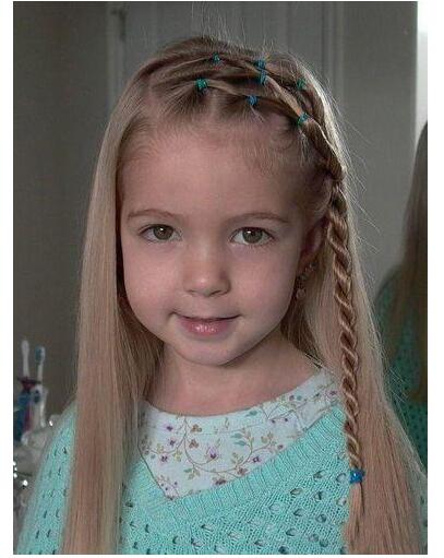 两股编发对小女孩来讲也是蛮好看的,侧梳的长发,因为是直发更显漂亮,侧编两股辫发型蓬松从上边将头发梳过去,分着层次将头发扭转着梳在一起,两股辫编发小皮筋固定就好了。