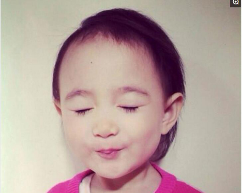哈哈,甜馨去掉刘海后,额头有点大哦