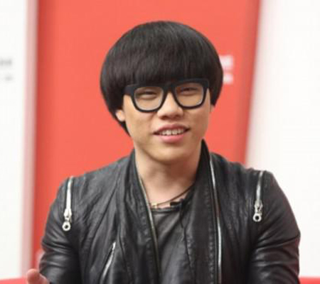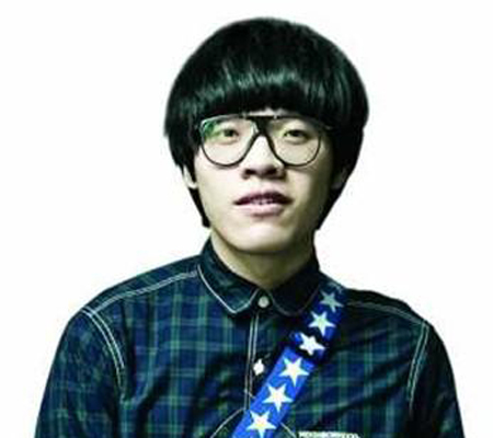 李琦厚重的刘海黑发冬菇头帅气时尚,搭配一副夸张的黑框眼镜,尽显可爱憨厚姿态。