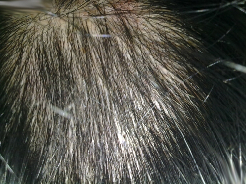 我的病人刚来求诊时,头皮的圆形秃有不少部位可以用干净无毛来形容,病人 很彷徨无助、担心无法回到从前的浓密状态。 经过两个月的治疗后,逐渐长出细微毛发。 再过三个月,头发很浓密,已经看不出来先前的秃发。