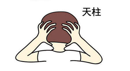 1. 以拇指按揉天柱穴,需注意穴道的位置,避免手指滑开。