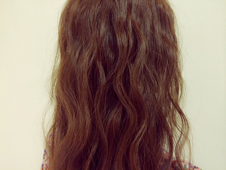 (1)首先,从发根至发梢整体上卷,然后喷上喷雾发蜡。没有喷雾发蜡时可以使用含水量较多的发蜡。