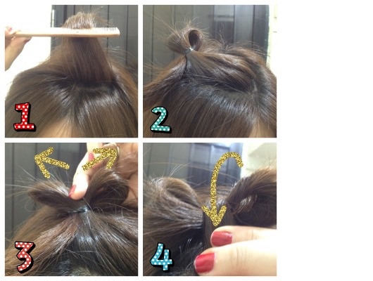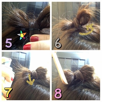 5. 把刚刚于留在头顶的头发绕过两个圈圈中间