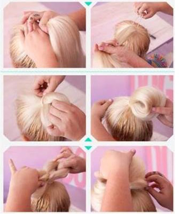 6. 把刚刚于留在下方的头发绕过两个圈圈中间