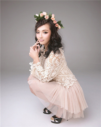 长相甜美可爱的张嘉倪带上粉红玫瑰编织而成的花圈甜美度升温,刘海的整齐编发和一头乌黑亮丽的中长发秀出她的甜美气质。