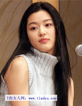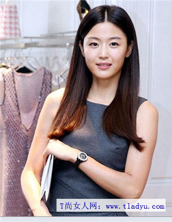 这款黑色直发发型,不需要任何的染色,凸显了全智贤的清纯魅力。