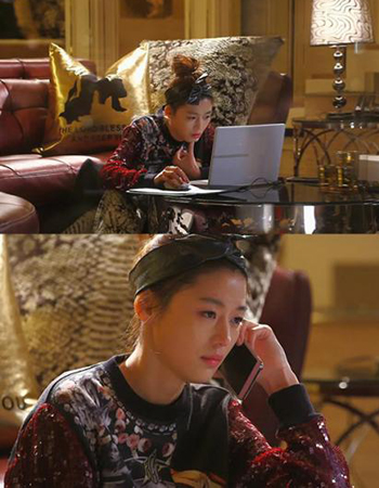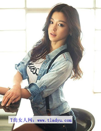 蓬松的发丝自然的垂落在肩膀两边,搭配全智贤搞怪的表情,显得动感时尚。