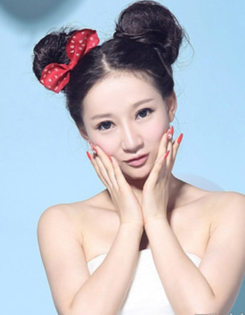 少女的清澈与个性并存,长长的的头发怎么扎都可以,两侧盘起高高的发髻,十足俏皮抢镜,配上发饰,更显少女可爱感。