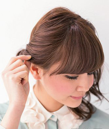 韩式少女系蓬松马尾辫扎法