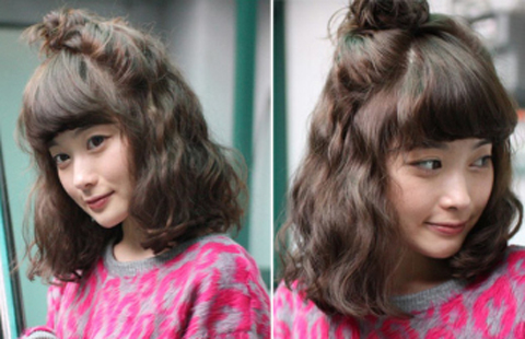 发量偏多的妹纸们可以试试这款短发蛋卷头哦。泡面式的烫发打造出蓬松饱满的发感,在头顶扎一个小小的花苞,宛如邻家妹子般清纯可爱。