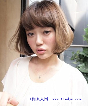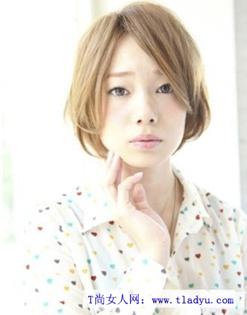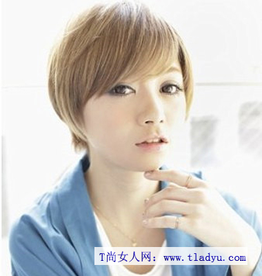 侧分出刘海,层次的短发造型显露出小清新的感觉。而稍带出内扣式的造型将脸型显得更加娇小一些。