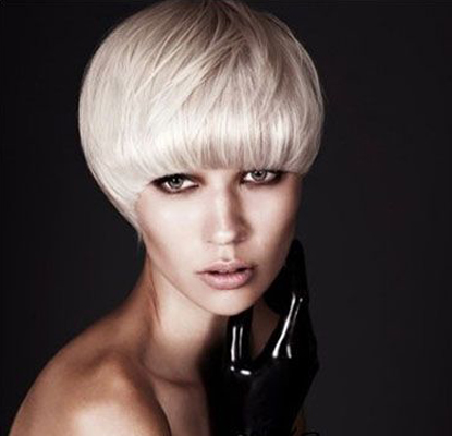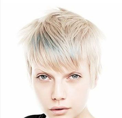 这绝对是欧美个性短发的时尚代表。侧搭在前额的长刘海蓝色挑染时尚冶艳,银色白色更是衬托出白皙的肌肤。