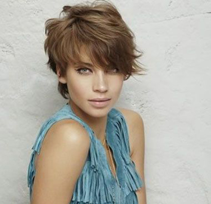 棕色短发凌乱轻盈,蓬松的感觉十分清爽。薄薄的长刘海又显得时尚感十足。很随意清爽的一款短发哦。