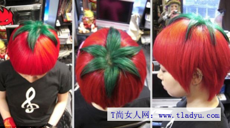 日本发廊推“熟番茄”发型走红 创意十足,英国《每日邮报》5月1日刊登了一组创意十足的“番茄”发型照片,照片中的发型红绿相间,酷似熟透的番茄。报道称,照片中的该发型是由日本Trick Store发廊造型师Hiro设计的。其得意之