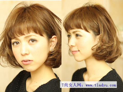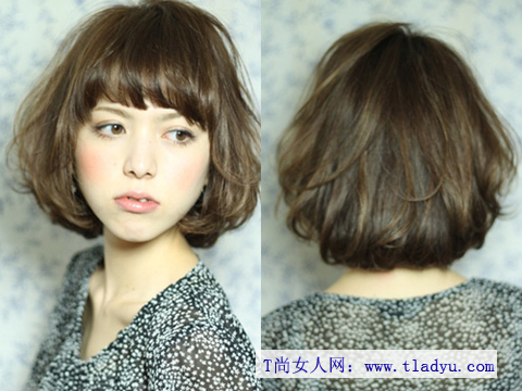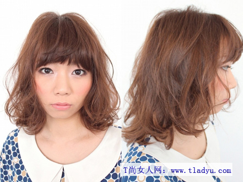 中分的刘海能突出知性的味道,加上两颊的卷卷垂坠感很好,整体向内收拢,时尚之余却带有点点复古的味道。