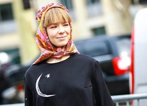 用活泼亮丽的色彩,来迎合春天给人充满活力的感觉再适合不过了,粉色系的头巾加上头顶精致的花朵,春姑娘提前来到了。