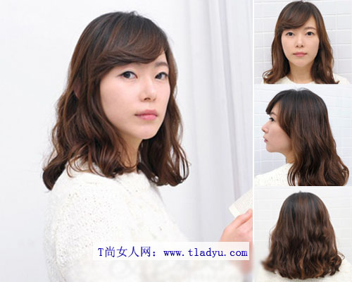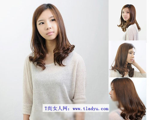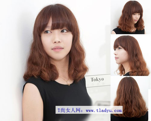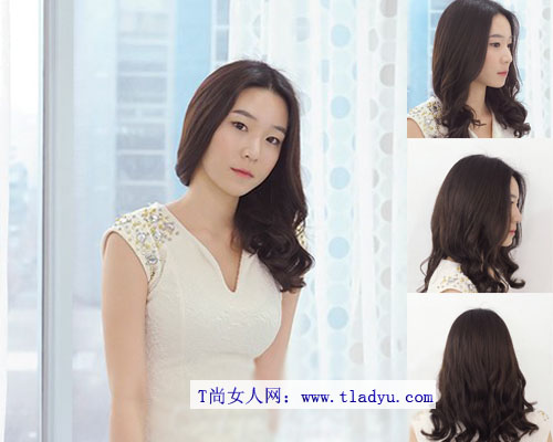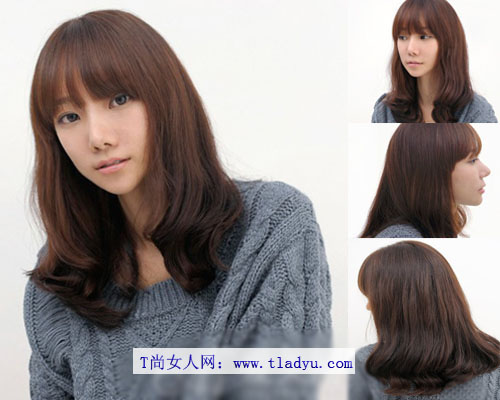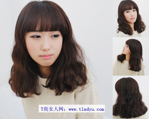 整齐可爱齐刘海,起到了很好的减龄作用,也突显了MM美丽清澈的双眸,层层下来的波浪型卷发,将女人的成熟优雅气质完全彰显出来。当可爱与优雅相遇,不仅没有冲突,反而让你更具男人缘哦。