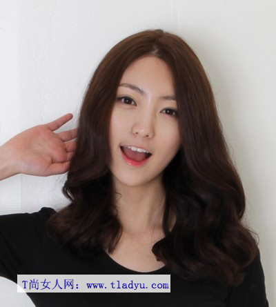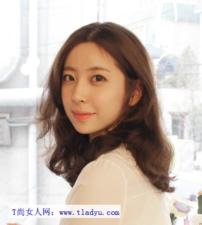 将中分之后两侧不是很长的刘海,做了大弧度卷曲,后面的头发沿着这个卷度往下进行不规则烫卷。齐肩的头发,让你的淑女气质尽情展现。