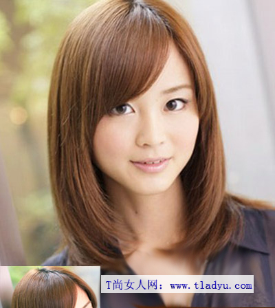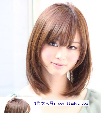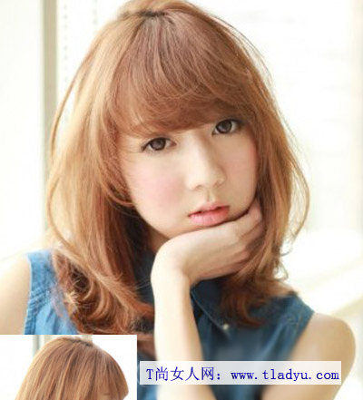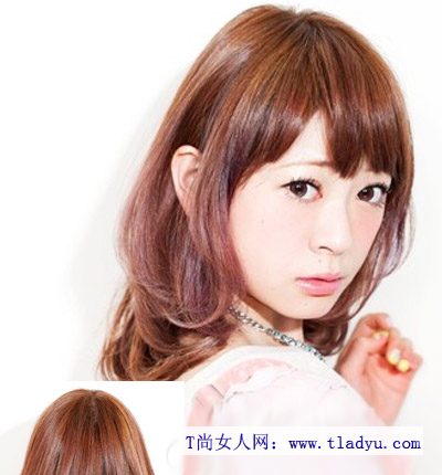 喜欢棕红色MM则部分考虑这款发型了,采用的是三七刘海分设计,发色带有诱人的光泽度,发尾适度内卷,加之挽起一边塞至耳后,让整款造型可爱但有不失小性感。