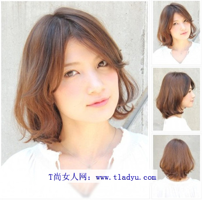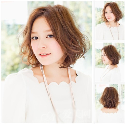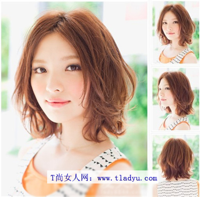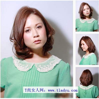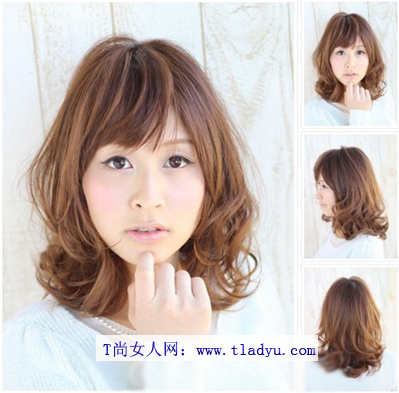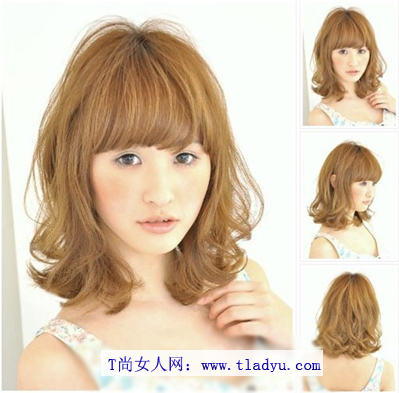 清新及肩梨花头。厚重的齐刘海遮盖住额头缺点,烫出蓬松的层次感不规则烫发,制造出个性的梨花头造型。