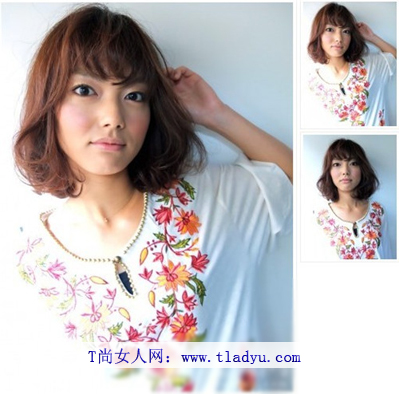 中分碎发梨花头。中分过后,将发尾烫出外扩式的烫发造型显得飘逸又随意,将自然的感觉轻松打造。