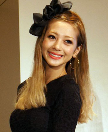 金棕色的渐染长发很亮泽很洋气,齐脚长直发带点卷曲蓬松的质感,搭配夸张的黑色头饰使可可小姐看上去像洋娃娃般可爱。