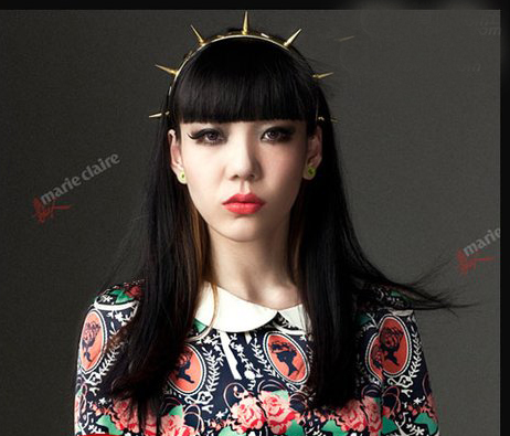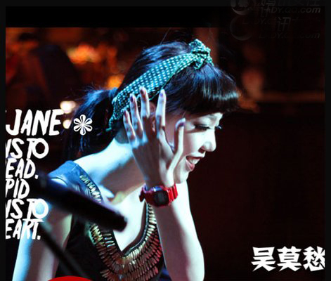 看多了吴莫愁长发飘飘,齐刘海的样子,肯定会觉得腻。吴莫愁肯定花心思改变自己,不断的破坏自己形象来找寻突破。这时候的她将头发高高盘起,刘海内卷形成弧形状,再带上宽发带,你还能认的出她吗?浓艳的红唇,重重的烟熏,怎么也想象不到她是那个刚满20岁的女孩。