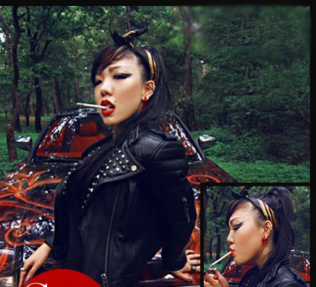 谁会想到一个本身很可爱的兔耳发箍却让吴莫愁破坏到如此地步,身穿皮夹克,嘴里叼着烟,靠在豪华车面,那霸气又非常不屑的表情,活生生的一个黑帮老大出现在我们面前。但是破坏虽破坏,吴莫愁的个人魅力不得不让人钦佩。