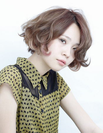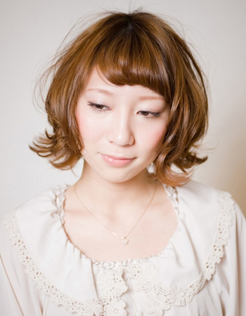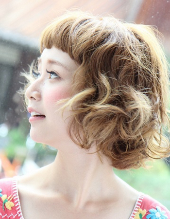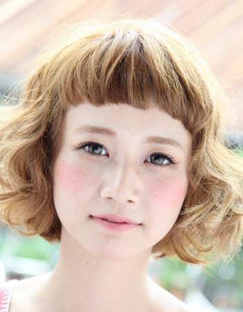这款发型同样是较短的刘海,这种刘海十分适合脸型较圆的女生,头发修剪出层次感,上层头发烫内卷,而下层头发烫外卷,俏皮不死板。
