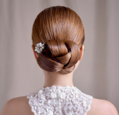 精致唯美的新娘盘发最能体现个人气质品位,像这款把长发编成细致造型的发髻,匠心独运让人过目难忘。