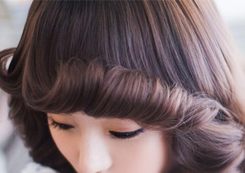 烫卷方式强烈的梨花头经过深色的染发造型作铺垫后,变得与众不同起来