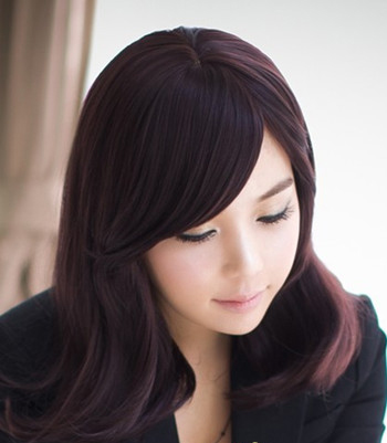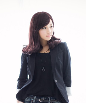同样深色的染发造型给予人成熟冷静的感觉,加上侧刘海的修饰后,变得知性又充满魅力