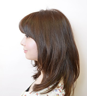 通过留出侧刘海将脸型轮廓显长。而内扣式的感觉增加了修颜的效果